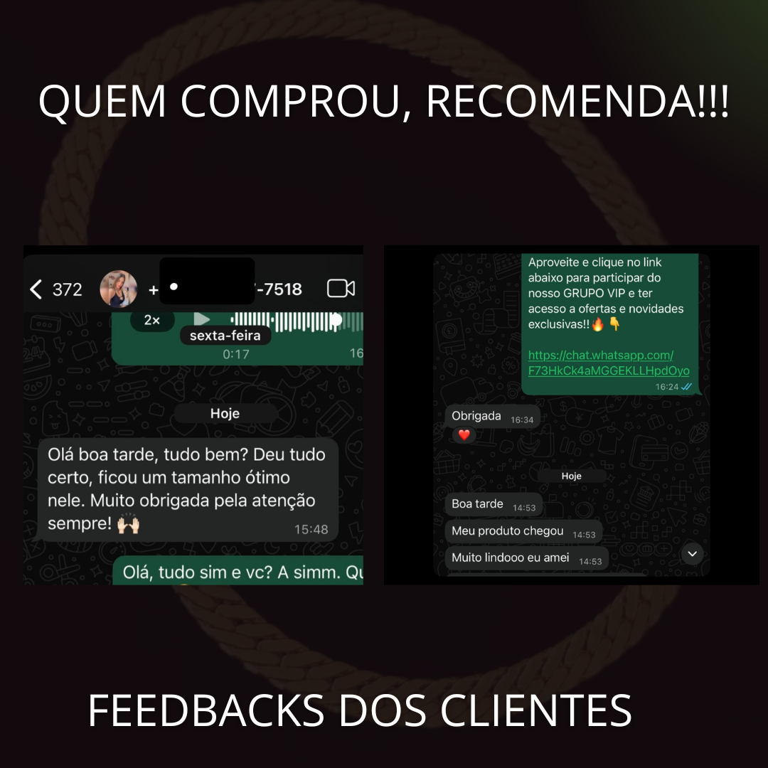 TROCAS E DEVOLUÇÕES: A troca pode ser feita em até 7 dias após recebimento das peças.