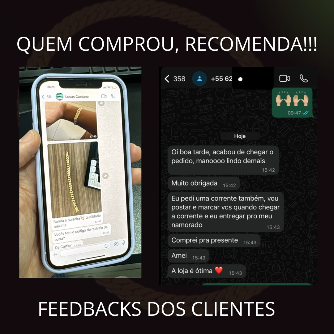 As peças contam com Banho de ouro + antialérgico + verniz para proteção. Unindo durabilidade e preço justo.